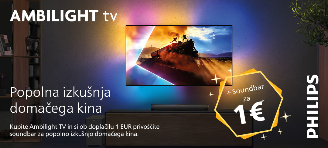 Kupite Ambilight TV 55OLED770 in si ob doplačilu 1 EUR privoščite Soundbar zvočnik Philips TAB6100 za popolno izkušnjo domačega kina.